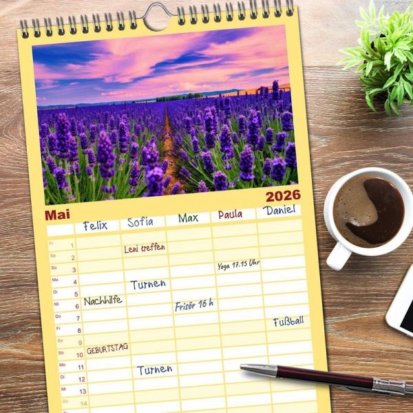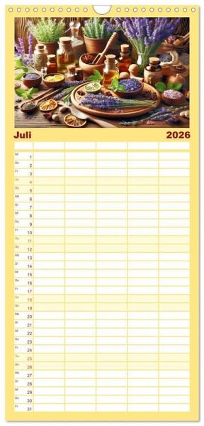 PRAKTISCH - übersichtlicher Familienkalender mit 5 Spalten für bis zu 5 Personen für mehr Struktur im Alltag - so bleiben alle Termine im Blick!ÜBERSICHTLICH - mit farblich getrennten Wochen- und Feiertagen. Die einzelnen Felder bieten genügend Platz für Eintragungen. So macht Organisieren Spaß!FANTASTISCHE BILDER - Dieser Planer ist nicht nur eine nützliche Hilfe im Alltag, sondern schmückt gleichzeitig Ihr Zuhause. Ideal auch als Geschenk.FÜR ALLE STIFTE GEEIGNET - ganz egal, ob Sie lieber mit Kugelschreiber oder Bleistift schreiben.NACHHALTIG - deutliche Abfallreduzierung durch bedarfsgerechte Einzelstückfertigung, umweltfreundliches FSC-zertifiziertes Papier, Produktion in Deutschland, klimabewusste Logistik.Ein Duft, der beruhigt, ein Moment, der bleibt. Sanft wie ein Sommerabend, entfaltet Lavendel seine natürliche Kraft und schenkt dir Ruhe, Klarheit und Wohlbefinden. Für Körper, Geist und Seele. von Autor(in): Torsten Irmer