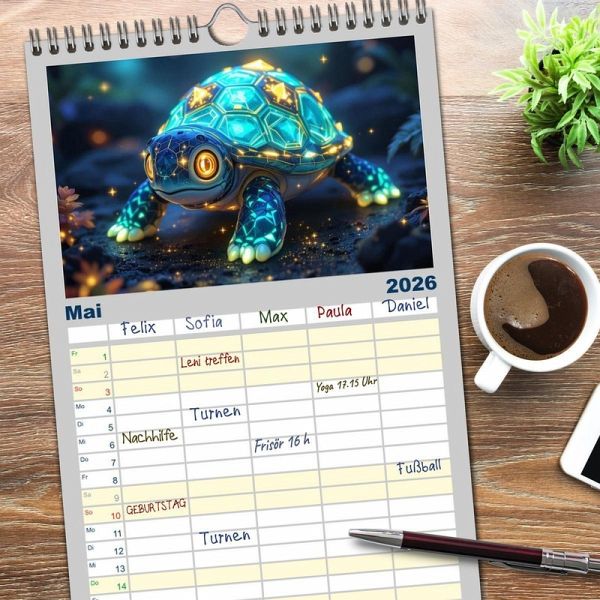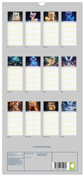 PRAKTISCH - übersichtlicher Familienkalender mit 5 Spalten für bis zu 5 Personen für mehr Struktur im Alltag - so bleiben alle Termine im Blick!ÜBERSICHTLICH - mit farblich getrennten Wochen- und Feiertagen. Die einzelnen Felder bieten genügend Platz für Eintragungen. So macht Organisieren Spaß!FANTASTISCHE BILDER - Dieser Planer ist nicht nur eine nützliche Hilfe im Alltag, sondern schmückt gleichzeitig Ihr Zuhause. Ideal auch als Geschenk.FÜR ALLE STIFTE GEEIGNET - ganz egal, ob Sie lieber mit Kugelschreiber oder Bleistift schreiben.NACHHALTIG - deutliche Abfallreduzierung durch bedarfsgerechte Einzelstückfertigung, umweltfreundliches FSC-zertifiziertes Papier, Produktion in Deutschland, klimabewusste Logistik.Niedliche leuchtende Tierbabys von Autor(in): k_pop_hal_abeoji