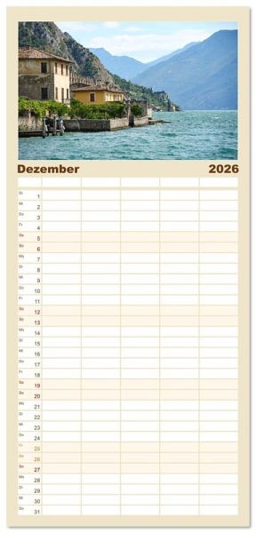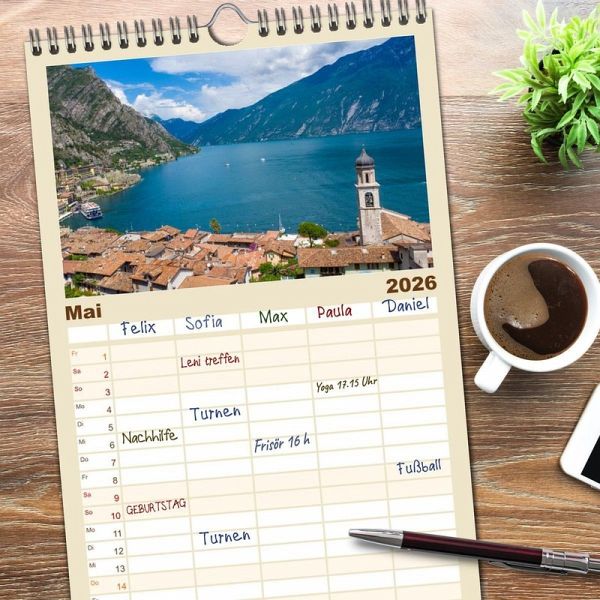 PRAKTISCH - übersichtlicher Familienkalender mit 5 Spalten für bis zu 5 Personen für mehr Struktur im Alltag - so bleiben alle Termine im Blick!ÜBERSICHTLICH - mit farblich getrennten Wochen- und Feiertagen. Die einzelnen Felder bieten genügend Platz für Eintragungen. So macht Organisieren Spaß!FANTASTISCHE BILDER - Dieser Planer ist nicht nur eine nützliche Hilfe im Alltag, sondern schmückt gleichzeitig Ihr Zuhause. Ideal auch als Geschenk.FÜR ALLE STIFTE GEEIGNET - ganz egal, ob Sie lieber mit Kugelschreiber oder Bleistift schreiben.NACHHALTIG - deutliche Abfallreduzierung durch bedarfsgerechte Einzelstückfertigung, umweltfreundliches FSC-zertifiziertes Papier, Produktion in Deutschland, klimabewusste Logistik.Zitrusparadies am Gardasee - Entdecken Sie die lebendigen Landschaften und malerischen Ansichten von Limone sul Garda. Monat für Monat im Gardasee Kalender von Limone sul Garda von Autor(in): Michael Bihlmayer