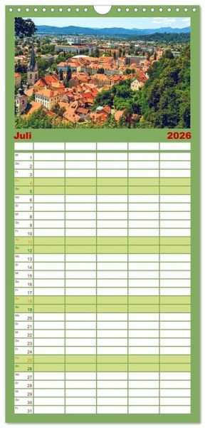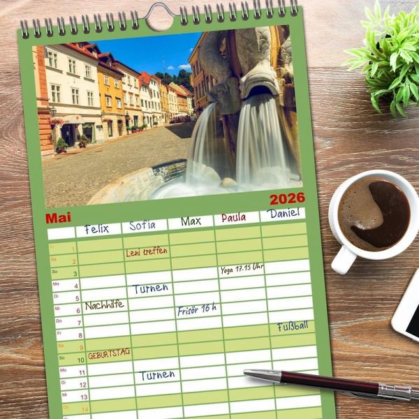 PRAKTISCH - übersichtlicher Familienkalender mit 5 Spalten für bis zu 5 Personen für mehr Struktur im Alltag - so bleiben alle Termine im Blick!ÜBERSICHTLICH - mit farblich getrennten Wochen- und Feiertagen. Die einzelnen Felder bieten genügend Platz für Eintragungen. Somacht Organisieren Spaß!FANTASTISCHE BILDER - Dieser Planer ist nicht nur eine nützliche Hilfe im Alltag, sondern schmückt gleichzeitig Ihr Zuhause. Ideal auch als Geschenk.FÜR ALLE STIFTE GEEIGNET - ganz egal, ob Sie lieber mit Kugelschreiber oder Bleistift schreiben.NACHHALTIG - deutliche Abfallreduzierung durch bedarfsgerechte Einzelstückfertigung, umweltfreundliches FSC-zertifiziertes Papier, Produktion in Deutschland, klimabewusste Logistik.Sommer in der Slowenischen Hauptstadt Ljubljana von Autor(in): drachenkind-fotografie
