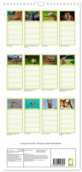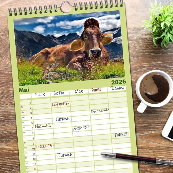PRAKTISCH - übersichtlicher Familienkalender mit 5 Spalten für bis zu 5 Personen für mehr Struktur im Alltag - so bleiben alle Termine im Blick!ÜBERSICHTLICH - mit farblich getrennten Wochen- und Feiertagen. Die einzelnen Felder bieten genügend Platz für Eintragungen. So macht Organisieren Spaß!FANTASTISCHE BILDER - Dieser Planer ist nicht nur eine nützliche Hilfe im Alltag, sondern schmückt gleichzeitig Ihr Zuhause. Ideal auch als Geschenk.FÜR ALLE STIFTE GEEIGNET - ganz egal, ob Sie lieber mit Kugelschreiber oder Bleistift schreiben.NACHHALTIG - deutliche Abfallreduzierung durch bedarfsgerechte Einzelstückfertigung, umweltfreundliches FSC-zertifiziertes Papier, Produktion in Deutschland, klimabewusste Logistik.Schöne Tierbilder, die Freude machen. von Autor(in): Peter Roder