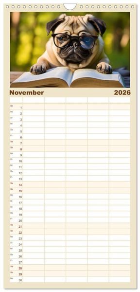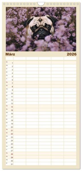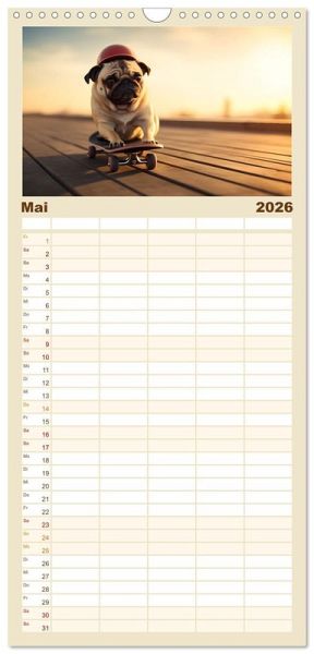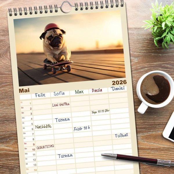 PRAKTISCH - übersichtlicher Familienkalender mit 5 Spalten für bis zu 5 Personen für mehr Struktur im Alltag - so bleiben alle Termine im Blick!ÜBERSICHTLICH - mit farblich getrennten Wochen- und Feiertagen. Die einzelnen Felder bieten genügend Platz für Eintragungen. So macht Organisieren Spaß!FANTASTISCHE BILDER - Dieser Planer ist nicht nur eine nützliche Hilfe im Alltag, sondern schmückt gleichzeitig Ihr Zuhause. Ideal auch als Geschenk.FÜR ALLE STIFTE GEEIGNET - ganz egal, ob Sie lieber mit Kugelschreiber oder Bleistift schreiben.NACHHALTIG - deutliche Abfallreduzierung durch bedarfsgerechte Einzelstückfertigung, umweltfreundliches FSC-zertifiziertes Papier, Produktion in Deutschland, klimabewusste Logistik.Möpse: Weil jeder Tag ein bisschen Quatsch braucht von Autor(in): Attila Arndt