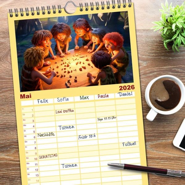 PRAKTISCH - übersichtlicher Familienkalender mit 5 Spalten für bis zu 5 Personen für mehr Struktur im Alltag - so bleiben alle Termine im Blick!ÜBERSICHTLICH - mit farblich getrennten Wochen- und Feiertagen. Die einzelnen Felder bieten genügend Platz für Eintragungen. So macht Organisieren Spaß!FANTASTISCHE BILDER - Dieser Planer ist nicht nur eine nützliche Hilfe im Alltag, sondern schmückt gleichzeitig Ihr Zuhause. Ideal auch als Geschenk.FÜR ALLE STIFTE GEEIGNET - ganz egal, ob Sie lieber mit Kugelschreiber oder Bleistift schreiben.NACHHALTIG - deutliche Abfallreduzierung durch bedarfsgerechte Einzelstückfertigung, umweltfreundliches FSC-zertifiziertes Papier, Produktion in Deutschland, klimabewusste Logistik.Eine humorvolle Reise mit urkomischen Illustrationen aus der prähistorischen Ära. von Autor(in): Dirk Meutzner