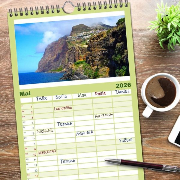 PRAKTISCH - übersichtlicher Familienkalender mit 5 Spalten für bis zu 5 Personen für mehr Struktur im Alltag - so bleiben alle Termine im Blick!ÜBERSICHTLICH - mit farblich getrennten Wochen- und Feiertagen. Die einzelnen Felder bieten genügend Platz für Eintragungen. So macht Organisieren Spaß!FANTASTISCHE BILDER - Dieser Planer ist nicht nur eine nützliche Hilfe im Alltag, sondern schmückt gleichzeitig Ihr Zuhause. Ideal auch als Geschenk.FÜR ALLE STIFTE GEEIGNET - ganz egal, ob Sie lieber mit Kugelschreiber oder Bleistift schreiben.NACHHALTIG - deutliche Abfallreduzierung durch bedarfsgerechte Einzelstückfertigung, umweltfreundliches FSC-zertifiziertes Papier, Produktion in Deutschland, klimabewusste Logistik.Die grüne Idylle. von Autor(in): Happy Monkey