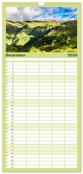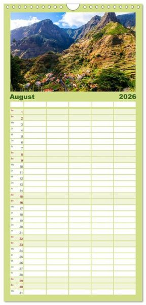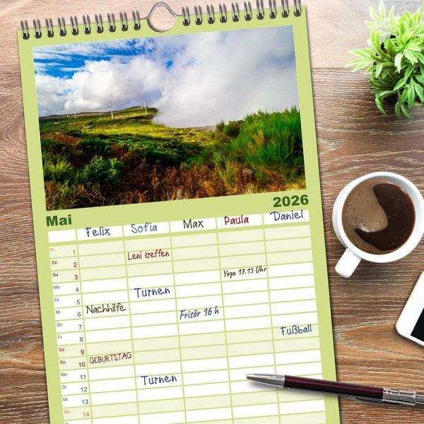 PRAKTISCH - übersichtlicher Familienkalender mit 5 Spalten für bis zu 5 Personen für mehr Struktur im Alltag - so bleiben alle Termine im Blick!ÜBERSICHTLICH - mit farblich getrennten Wochen- und Feiertagen. Die einzelnen Felder bieten genügend Platz für Eintragungen. So macht Organisieren Spaß!FANTASTISCHE BILDER - Dieser Planer ist nicht nur eine nützliche Hilfe im Alltag, sondern schmückt gleichzeitig Ihr Zuhause. Ideal auch als Geschenk.FÜR ALLE STIFTE GEEIGNET - ganz egal, ob Sie lieber mit Kugelschreiber oder Bleistift schreiben.NACHHALTIG - deutliche Abfallreduzierung durch bedarfsgerechte Einzelstückfertigung, umweltfreundliches FSC-zertifiziertes Papier, Produktion in Deutschland, klimabewusste Logistik.Eindrucksvolle Natur, zerklüftete Landschaften und malerische Orte: Madeira von Autor(in): Dennis Westermann