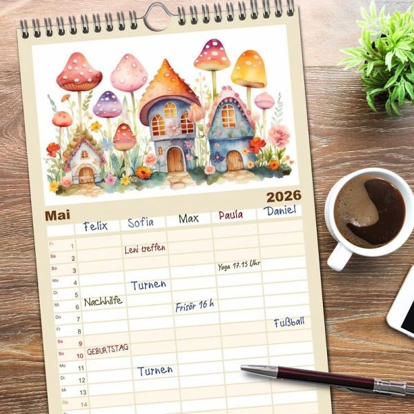 PRAKTISCH - übersichtlicher Familienkalender mit 5 Spalten für bis zu 5 Personen für mehr Struktur im Alltag - so bleiben alle Termine im Blick!ÜBERSICHTLICH - mit farblich getrennten Wochen- und Feiertagen. Die einzelnen Felder bieten genügend Platz für Eintragungen. So macht Organisieren Spaß!FANTASTISCHE BILDER - Dieser Planer ist nicht nur eine nützliche Hilfe im Alltag, sondern schmückt gleichzeitig Ihr Zuhause. Ideal auch als Geschenk.FÜR ALLE STIFTE GEEIGNET - ganz egal, ob Sie lieber mit Kugelschreiber oder Bleistift schreiben.NACHHALTIG - deutliche Abfallreduzierung durch bedarfsgerechte Einzelstückfertigung, umweltfreundliches FSC-zertifiziertes Papier, Produktion in Deutschland, klimabewusste Logistik.Ein Jahr voller Feenfantasien von Autor(in): Tina Seidel