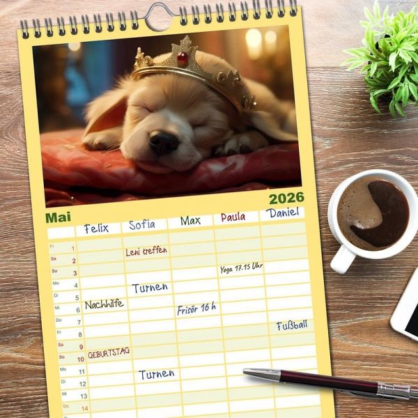 PRAKTISCH - übersichtlicher Familienkalender mit 5 Spalten für bis zu 5 Personen für mehr Struktur im Alltag - so bleiben alle Termine im Blick!ÜBERSICHTLICH - mit farblich getrennten Wochen- und Feiertagen. Die einzelnen Felder bieten genügend Platz für Eintragungen. So macht Organisieren Spaß!FANTASTISCHE BILDER - Dieser Planer ist nicht nur eine nützliche Hilfe im Alltag, sondern schmückt gleichzeitig Ihr Zuhause. Ideal auch als Geschenk.FÜR ALLE STIFTE GEEIGNET - ganz egal, ob Sie lieber mit Kugelschreiber oder Bleistift schreiben.NACHHALTIG - deutliche Abfallreduzierung durch bedarfsgerechte Einzelstückfertigung, umweltfreundliches FSC-zertifiziertes Papier, Produktion in Deutschland, klimabewusste Logistik.Unsere vierbeinigen Freunde als bekannte und geliebte Märchenfiguren von Autor(in): Daniela Tapper