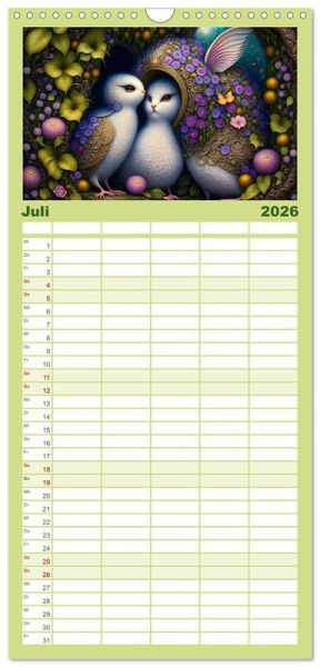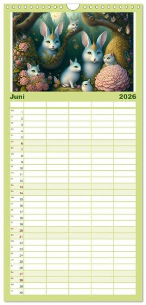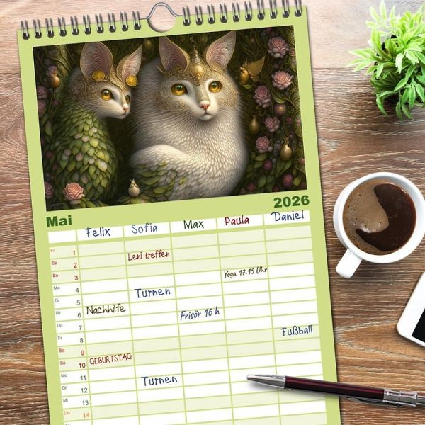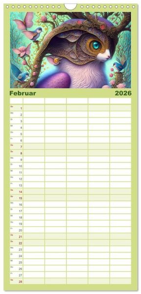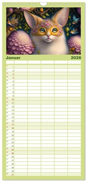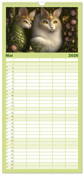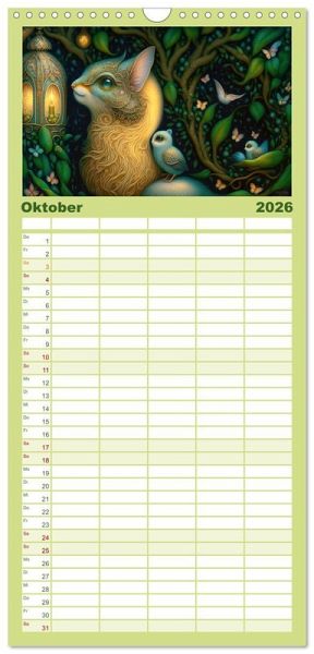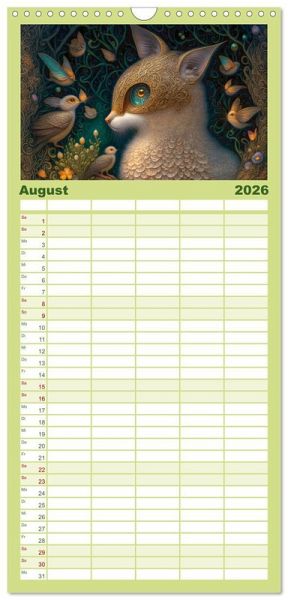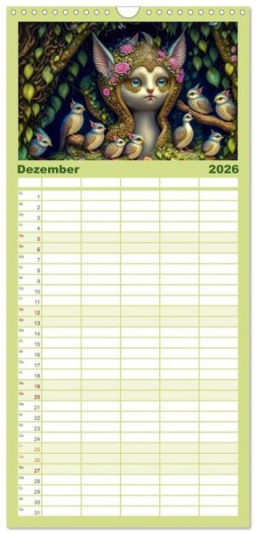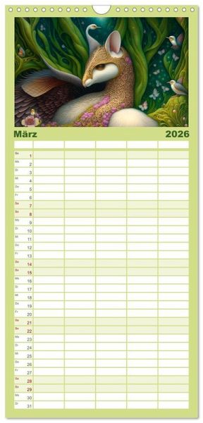 PRAKTISCH - übersichtlicher Familienkalender mit 5 Spalten für bis zu 5 Personen für mehr Struktur im Alltag - so bleiben alle Termine im Blick!ÜBERSICHTLICH - mit farblich getrennten Wochen- und Feiertagen. Die einzelnen Felder bieten genügend Platz für Eintragungen. So macht Organisieren Spaß!FANTASTISCHE BILDER - Dieser Planer ist nicht nur eine nützliche Hilfe im Alltag, sondern schmückt gleichzeitig Ihr Zuhause. Ideal auch als Geschenk.FÜR ALLE STIFTE GEEIGNET - ganz egal, ob Sie lieber mit Kugelschreiber oder Bleistift schreiben.NACHHALTIG - deutliche Abfallreduzierung durch bedarfsgerechte Einzelstückfertigung, umweltfreundliches FSC-zertifiziertes Papier, Produktion in Deutschland, klimabewusste Logistik.Fabelhafte Tiere aus dem Land der Fantasie von Autor(in): Angelika Beuck