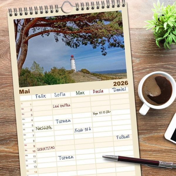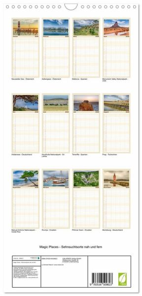 PRAKTISCH - übersichtlicher Familienkalender mit 5 Spalten für bis zu 5 Personen für mehr Struktur im Alltag - so bleiben alle Termine im Blick!ÜBERSICHTLICH - mit farblich getrennten Wochen- und Feiertagen. Die einzelnen Felder bieten genügend Platz für Eintragungen. So macht Organisieren Spaß!FANTASTISCHE BILDER - Dieser Planer ist nicht nur eine nützliche Hilfe im Alltag, sondern schmückt gleichzeitig Ihr Zuhause. Ideal auch als Geschenk.FÜR ALLE STIFTE GEEIGNET - ganz egal, ob Sie lieber mit Kugelschreiber oder Bleistift schreiben.NACHHALTIG - deutliche Abfallreduzierung durch bedarfsgerechte Einzelstückfertigung, umweltfreundliches FSC-zertifiziertes Papier, Produktion in Deutschland, klimabewusste Logistik.Besondere Orte zum Träumen und Verweilen von Autor(in): Michael Matziol