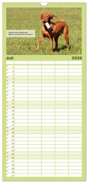 SCHE BILDER - Dieser Planer ist nicht nur eine nützliche Hilfe im Alltag, sondern schmückt gleichzeitig Ihr Zuhause. Ideal auch als Geschenk.FÜR ALLE STIFTE GEEIGNET - ganz egal, ob Sie lieber mit Kugelschreiber oder Bleistift schreiben.NACHHALTIG - deutliche Abfallreduzierung durch bedarfsgerechte Einzelstückfertigung, umweltfreundliches FSC-zertifiziertes Papier, Produktion in Deutschland, klimabewusste Logistik.Magyar Vizsla Zauberhafte Kobolde ein Kalender der besonderen Art dieser Rasse. von Autor(in): K. Grüttner