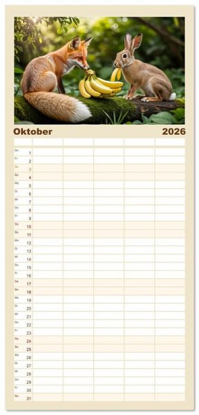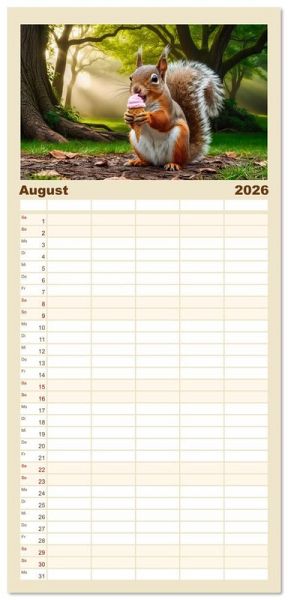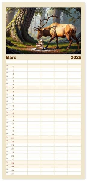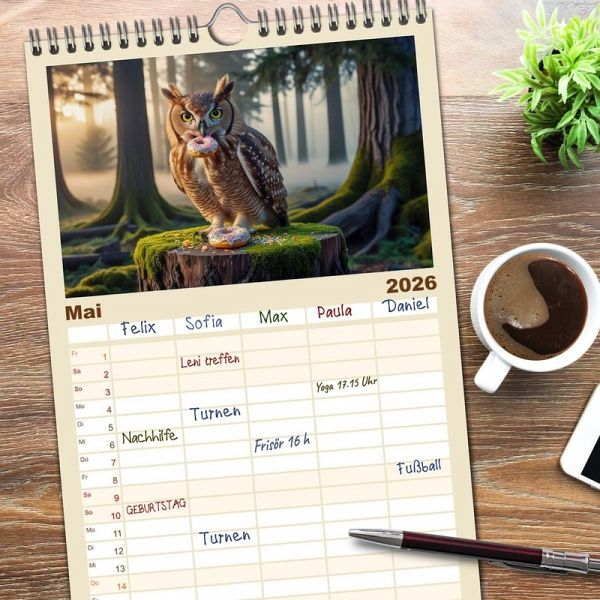 PRAKTISCH - übersichtlicher Familienkalender mit 5 Spalten für bis zu 5 Personen für mehr Struktur im Alltag - so bleiben alle Termine im Blick!ÜBERSICHTLICH - mit farblich getrennten Wochen- und Feiertagen. Die einzelnen Felder bieten genügend Platz für Eintragungen. So macht Organisieren Spaß!FANTASTISCHE BILDER - Dieser Planer ist nicht nur eine nützliche Hilfe im Alltag, sondern schmückt gleichzeitig Ihr Zuhause. Ideal auch als Geschenk.FÜR ALLE STIFTE GEEIGNET - ganz egal, ob Sie lieber mit Kugelschreiber oder Bleistift schreiben.NACHHALTIG - deutliche Abfallreduzierung durch bedarfsgerechte Einzelstückfertigung, umweltfreundliches FSC-zertifiziertes Papier, Produktion in Deutschland, klimabewusste Logistik.Denn Sie wissen was Sie tun! Schlemmen im Wald mit einem Schmunzeln beobachtet. von Autor(in): Dirk Rosin