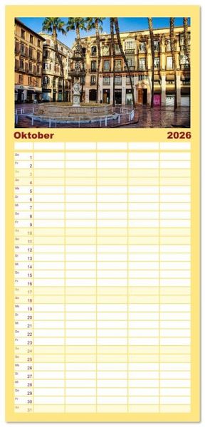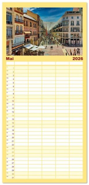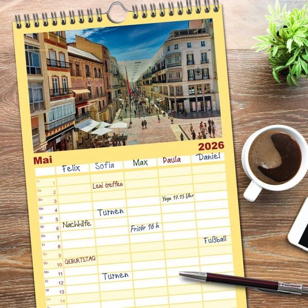 PRAKTISCH - übersichtlicher Familienkalender mit 5 Spalten für bis zu 5 Personen für mehr Struktur im Alltag - so bleiben alle Termine im Blick!ÜBERSICHTLICH - mit farblich getrennten Wochen- und Feiertagen. Die einzelnen Felder bieten genügend Platz für Eintragungen. So macht Organisieren Spaß!FANTASTISCHE BILDER - Dieser Planer ist nicht nur eine nützliche Hilfe im Alltag, sondern schmückt gleichzeitig Ihr Zuhause. Ideal auch als Geschenk.FÜR ALLE STIFTE GEEIGNET - ganz egal, ob Sie lieber mit Kugelschreiber oder Bleistift schreiben.NACHHALTIG - deutliche Abfallreduzierung durch bedarfsgerechte Einzelstückfertigung, umweltfreundliches FSC-zertifiziertes Papier, Produktion in Deutschland, klimabewusste Logistik.Ein Stück Malaga: Holen Sie sich das Flair direkt nach Hause! von Autor(in): Paul Michalzik