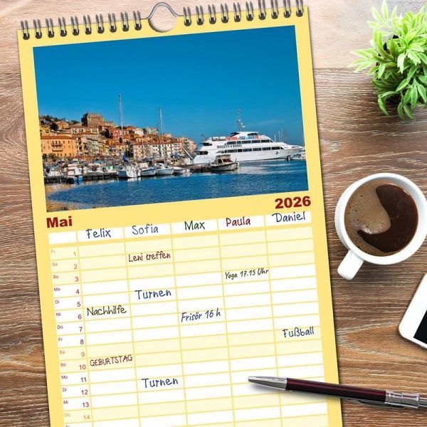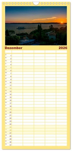 PRAKTISCH - übersichtlicher Familienkalender mit 5 Spalten für bis zu 5 Personen für mehr Struktur im Alltag - so bleiben alle Termine im Blick!ÜBERSICHTLICH - mit farblich getrennten Wochen- und Feiertagen. Die einzelnen Felder bieten genügend Platz für Eintragungen. So macht Organisieren Spaß!FANTASTISCHE BILDER - Dieser Planer ist nicht nur eine nützliche Hilfe im Alltag, sondern schmückt gleichzeitig Ihr Zuhause. Ideal auch als Geschenk.FÜR ALLE STIFTE GEEIGNET - ganz egal, ob Sie lieber mit Kugelschreiber oder Bleistift schreiben.NACHHALTIG - deutliche Abfallreduzierung durch bedarfsgerechte Einzelstückfertigung, umweltfreundliches FSC-zertifiziertes Papier, Produktion in Deutschland, klimabewusste Logistik.Eine Reise in die wunderschönen Orte Sirmione und Malcesine am Lago di Garda. von Autor(in): Peter Roder