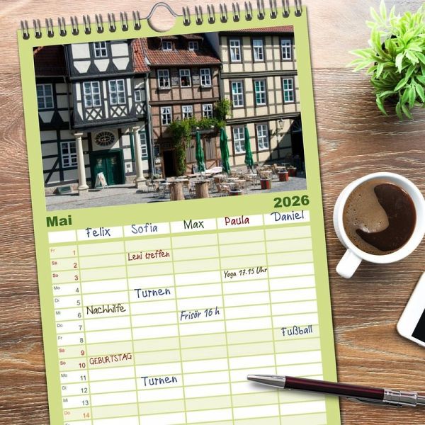 RAKTISCH - übersichtlicher Familienkalender mit 5 Spalten für bis zu 5 Personen für mehr Struktur im Alltag - so bleiben alle Termine im Blick!ÜBERSICHTLICH - mit farblich getrennten Wochen- und Feiertagen. Die einzelnen Felder bieten genügend Platz für Eintragungen. So macht Organisieren Spaß!FANTASTISCHE BILDER - Dieser Planer ist nicht nur eine nützliche Hilfe im Alltag, sondern schmückt gleichzeitig Ihr Zuhause. Ideal auch als Geschenk.FÜR ALLE STIFTE GEEIGNET - ganz egal, ob Sie lieber mit Kugelschreiber oder Bleistift schreiben.NACHHALTIG - deutliche Abfallreduzierung durch bedarfsgerechte Einzelstückfertigung, umweltfreundliches FSC-zertifiziertes Papier, Produktion in Deutschland, klimabewusste Logistik.Schönes Quedlinburg von Autor(in): Marcel Liebig