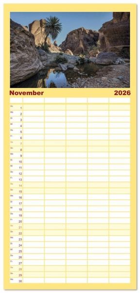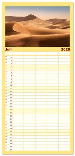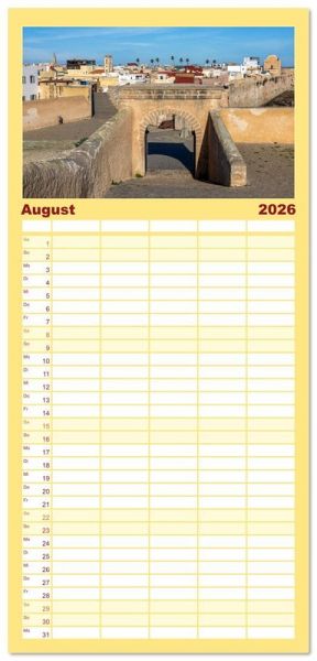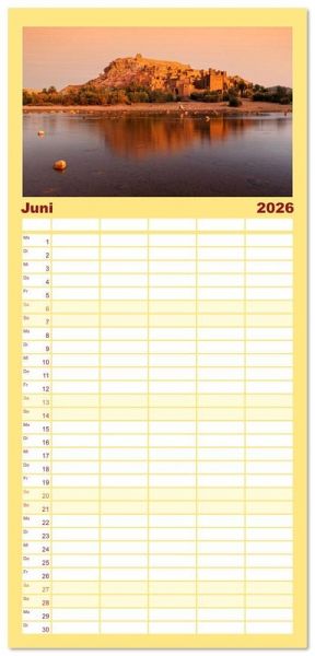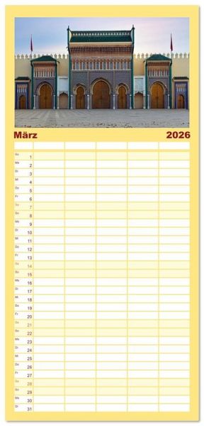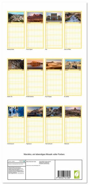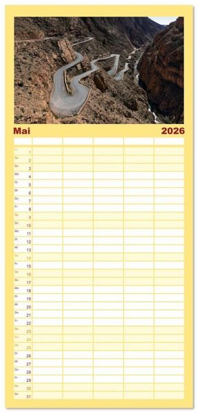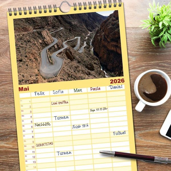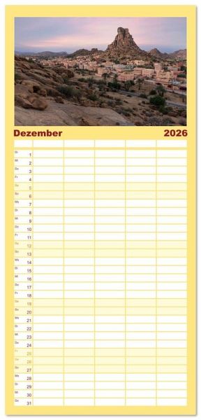 PRAKTISCH - übersichtlicher Familienkalender mit 5 Spalten für bis zu 5 Personen für mehr Struktur im Alltag - so bleiben alle Termine im Blick!ÜBERSICHTLICH - mit farblich getrennten Wochen- und Feiertagen. Die einzelnen Felder bieten genügend Platz für Eintragungen. So macht Organisieren Spaß!FANTASTISCHE BILDER - Dieser Planer ist nicht nur eine nützliche Hilfe im Alltag, sondern schmückt gleichzeitig Ihr Zuhause. Ideal auch als Geschenk.FÜR ALLE STIFTE GEEIGNET - ganz egal, ob Sie lieber mit Kugelschreiber oder Bleistift schreiben.NACHHALTIG - deutliche Abfallreduzierung durch bedarfsgerechte Einzelstückfertigung, umweltfreundliches FSC-zertifiziertes Papier, Produktion in Deutschland, klimabewusste Logistik.Marokko bietet vielfältige Erlebnisse: von historischen Medinas über majestätische Berge bis zu weiten Wüsten. von Autor(in): Joana Kruse