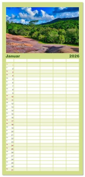 mit 5 Spalten für bis zu 5 Personen für mehr Struktur im Alltag - so bleiben alle Termine im Blick!ÜBERSICHTLICH - mit farblich getrennten Wochen- und Feiertagen. Die einzelnen Felder bieten genügend Platz für Eintragungen. So macht Organisieren Spaß!FANTASTISCHE BILDER - Dieser Planer ist nicht nur eine nützliche Hilfe im Alltag, sondern schmückt gleichzeitig Ihr Zuhause. Ideal auch als Geschenk.FÜR ALLE STIFTE GEEIGNET - ganz egal, ob Sie lieber mit Kugelschreiber oder Bleistift schreiben.NACHHALTIG - deutliche Abfallreduzierung durch bedarfsgerechte Einzelstückfertigung, umweltfreundliches FSC-zertifiziertes Papier, Produktion in Deutschland, klimabewusste Logistik.Mauritius ist ein farbenprächtiges Juwel, das vielfältige Freizeitaktivitäten und vor allem eine atemberaubende Natur bietet. von Autor(in): Thomas Leimeister