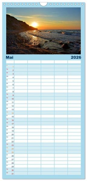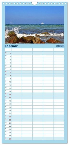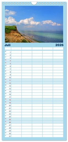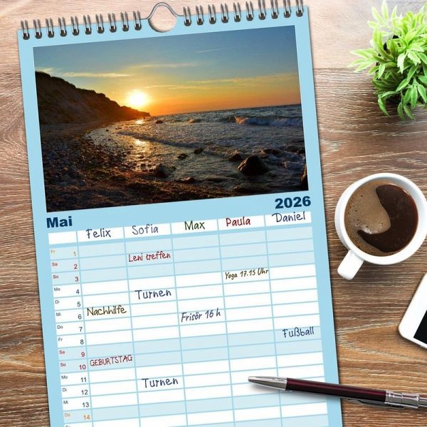 PRAKTISCH - übersichtlicher Familienkalender mit 5 Spalten für bis zu 5 Personen für mehr Struktur im Alltag - so bleiben alle Termine im Blick!ÜBERSICHTLICH - mit farblich getrennten Wochen- und Feiertagen. Die einzelnen Felder bieten genügend Platz für Eintragungen. So macht Organisieren Spaß!FANTASTISCHE BILDER - Dieser Planer ist nicht nur eine nützliche Hilfe im Alltag, sondern schmückt gleichzeitig Ihr Zuhause. Ideal auch als Geschenk.FÜR ALLE STIFTE GEEIGNET - ganz egal, ob Sie lieber mit Kugelschreiber oder Bleistift schreiben.NACHHALTIG - deutliche Abfallreduzierung durch bedarfsgerechte Einzelstückfertigung, umweltfreundliches FSC-zertifiziertes Papier, Produktion in Deutschland, klimabewusste Logistik.Ein Hauch von Meeresbrise von Autor(in): Sigrun Düll