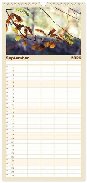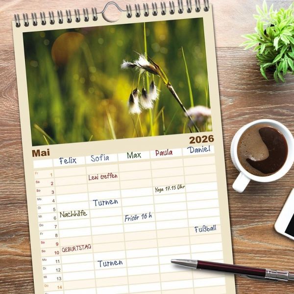PRAKTISCH - übersichtlicher Familienkalender mit 5 Spalten für bis zu 5 Personen für mehr Struktur im Alltag - so bleiben alle Termine im Blick!ÜBERSICHTLICH - mit farblich getrennten Wochen- und Feiertagen. Die einzelnen Felder bieten genügend Platz für Eintragungen. So macht Organisieren Spaß!FANTASTISCHE BILDER - Dieser Planer ist nicht nur eine nützliche Hilfe im Alltag, sondern schmückt gleichzeitig Ihr Zuhause. Ideal auch als Geschenk.FÜR ALLE STIFTE GEEIGNET - ganz egal, ob Sie lieber mit Kugelschreiber oder Bleistift schreiben.NACHHALTIG - deutliche Abfallreduzierung durch bedarfsgerechte Einzelstückfertigung, umweltfreundliches FSC-zertifiziertes Papier, Produktion in Deutschland, klimabewusste Logistik.Zauberhafte Naturfotografie von Autor(in): Sabine Löwer