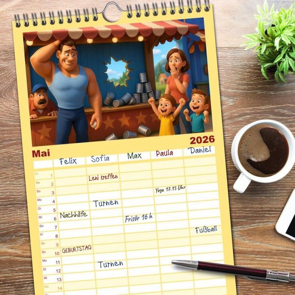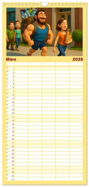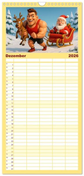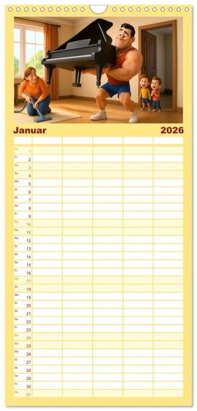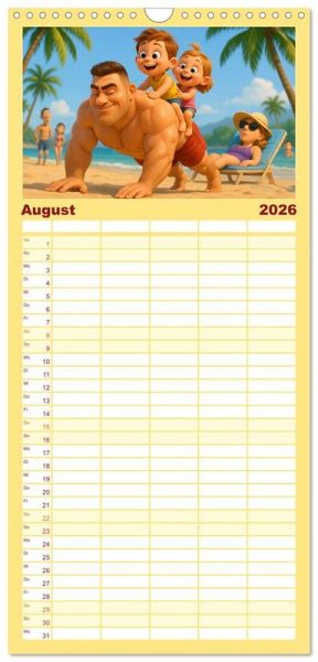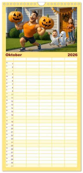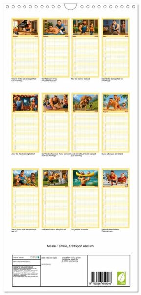 PRAKTISCH - übersichtlicher Familienkalender mit 5 Spalten für bis zu 5 Personen für mehr Struktur im Alltag - so bleiben alle Termine im Blick!ÜBERSICHTLICH - mit farblich getrennten Wochen- und Feiertagen. Die einzelnen Felder bieten genügend Platz für Eintragungen. So macht Organisieren Spaß!FANTASTISCHE BILDER - Dieser Planer ist nicht nur eine nützliche Hilfe im Alltag, sondern schmückt gleichzeitig Ihr Zuhause. Ideal auch als Geschenk.FÜR ALLE STIFTE GEEIGNET - ganz egal, ob Sie lieber mit Kugelschreiber oder Bleistift schreiben.NACHHALTIG - deutliche Abfallreduzierung durch bedarfsgerechte Einzelstückfertigung, umweltfreundliches FSC-zertifiziertes Papier, Produktion in Deutschland, klimabewusste Logistik.Ein Jahr voller Muskelkraft, Familienchaos und liebevoller Übertreibung - der Kalender für alle, die Muskelkraft lieben von Autor(in): Kerstin Waurick