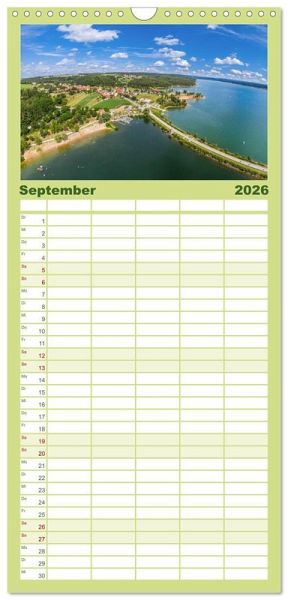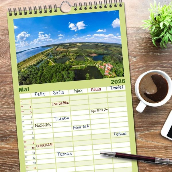 PRAKTISCH - übersichtlicher Familienkalender mit 5 Spalten für bis zu 5 Personen für mehr Struktur im Alltag - so bleiben alle Termine im Blick!ÜBERSICHTLICH - mit farblich getrennten Wochen- und Feiertagen. Die einzelnen Felder bieten genügend Platz für Eintragungen. So macht Organisieren Spaß!FANTASTISCHE BILDER - Dieser Planer ist nicht nur eine nützliche Hilfe im Alltag, sondern schmückt gleichzeitig Ihr Zuhause. Ideal auch als Geschenk.FÜR ALLE STIFTE GEEIGNET - ganz egal, ob Sie lieber mit Kugelschreiber oder Bleistift schreiben.NACHHALTIG - deutliche Abfallreduzierung durch bedarfsgerechte Einzelstückfertigung, umweltfreundliches FSC-zertifiziertes Papier, Produktion in Deutschland, klimabewusste Logistik.Beeindruckende Luftaufnahmen der schönstenOrte in der Tourismusregion Fränkisches Seenland. von Autor(in): multimaps360