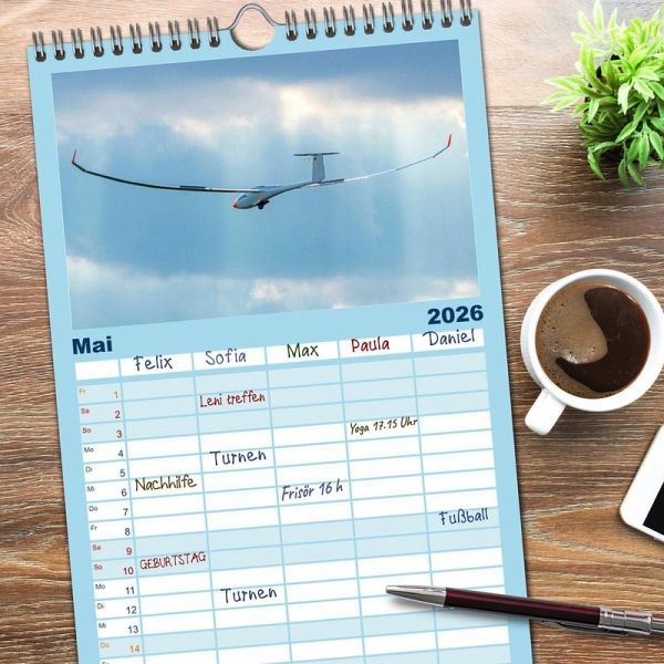 PRAKTISCH - übersichtlicher Familienkalender mit 5 Spalten für bis zu 5 Personen für mehr Struktur im Alltag - so bleiben alle Termine im Blick!ÜBERSICHTLICH - mit farblich getrennten Wochen- und Feiertagen. Die einzelnen Felder bieten genügend Platz für Eintragungen. So macht Organisieren Spaß!FANTASTISCHE BILDER - Dieser Planer ist nicht nur eine nützliche Hilfe im Alltag, sondern schmückt gleichzeitig Ihr Zuhause. Ideal auch als Geschenk.FÜR ALLE STIFTE GEEIGNET - ganz egal, ob Sie lieber mit Kugelschreiber oder Bleistift schreiben.NACHHALTIG - deutliche Abfallreduzierung durch bedarfsgerechte Einzelstückfertigung, umweltfreundliches FSC-zertifiziertes Papier, Produktion in Deutschland, klimabewusste Logistik.Segelflieger: Die Nachfahren Otto Lilienthals von Autor(in): CALVENDO Verlag