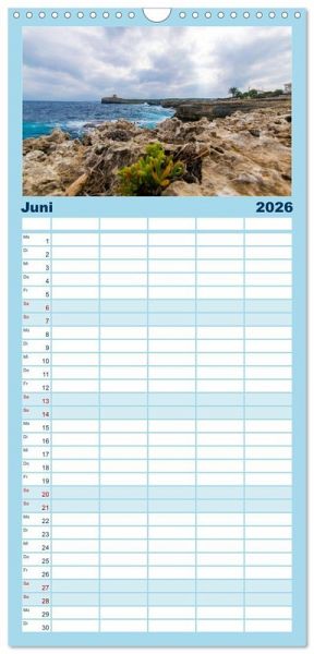 PRAKTISCH - übersichtlicher Familienkalender mit 5 Spalten für bis zu 5 Personen für mehr Struktur im Alltag - so bleiben alle Termine im Blick!ÜBERSICHTLICH - mit farblich getrennten Wochen- und Feiertagen. Die einzelnen Felder bieten genügend Platz für Eintragungen. So macht Organisieren Spaß!FANTASTISCHE BILDER - Dieser Planer ist nicht nur eine nützliche Hilfe im Alltag, sondern schmückt gleichzeitig Ihr Zuhause. Ideal auch als Geschenk.FÜR ALLE STIFTE GEEIGNET - ganz egal, ob Sie lieber mit Kugelschreiber oder Bleistift schreiben.NACHHALTIG - deutliche Abfallreduzierung durch bedarfsgerechte Einzelstückfertigung, umweltfreundliches FSC-zertifiziertes Papier, Produktion in Deutschland, klimabewusste Logistik.Raue Küstenlandschaften, türkisblaues Wasser und idyllische Buchten - all dies vereint Menorca. von Autor(in): Franziska Brückmann