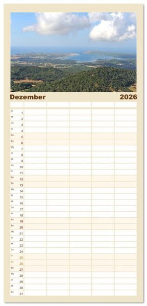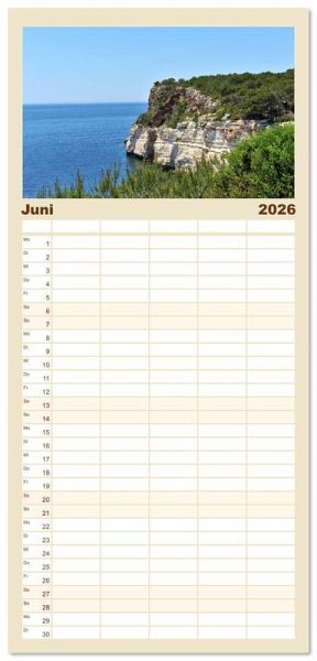 PRAKTISCH - übersichtlicher Familienkalender mit 5 Spalten für bis zu 5 Personen für mehr Struktur im Alltag - so bleiben alle Termine im Blick!ÜBERSICHTLICH - mit farblich getrennten Wochen- und Feiertagen. Die einzelnen Felder bieten genügend Platz für Eintragungen. So macht Organisieren Spaß!FANTASTISCHE BILDER - Dieser Planer ist nicht nur eine nützliche Hilfe im Alltag, sondern schmückt gleichzeitig Ihr Zuhause. Ideal auch als Geschenk.FÜR ALLE STIFTE GEEIGNET - ganz egal, ob Sie lieber mit Kugelschreiber oder Bleistift schreiben.NACHHALTIG - deutliche Abfallreduzierung durch bedarfsgerechte Einzelstückfertigung, umweltfreundliches FSC-zertifiziertes Papier, Produktion in Deutschland, klimabewusste Logistik.Mennorca, die schöne Schwester Mallorcas. von Autor(in): Ralf Mock