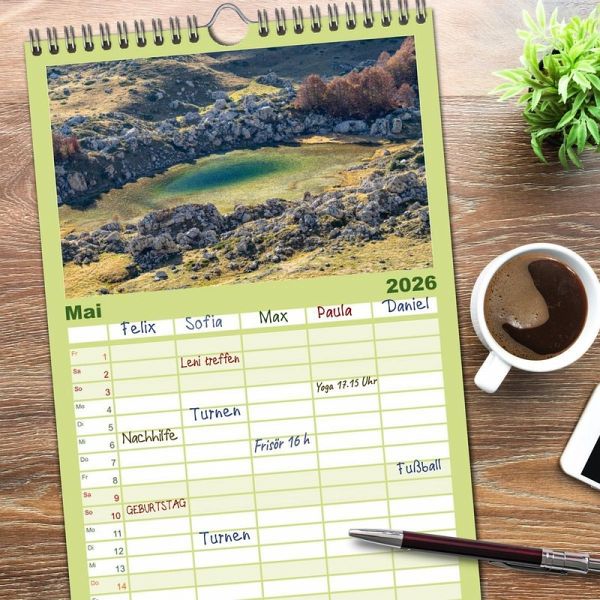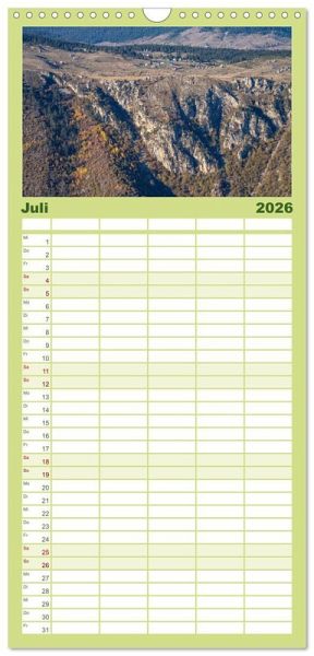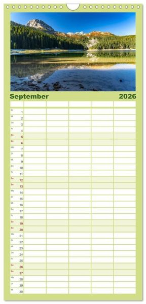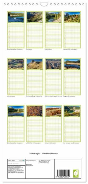 PRAKTISCH - übersichtlicher Familienkalender mit 5 Spalten für bis zu 5 Personen für mehr Struktur im Alltag - so bleiben alle Termine im Blick!ÜBERSICHTLICH - mit farblich getrennten Wochen- und Feiertagen. Die einzelnen Felder bieten genügend Platz für Eintragungen. So macht Organisieren Spaß!FANTASTISCHE BILDER - Dieser Planer ist nicht nur eine nützliche Hilfe im Alltag, sondern schmückt gleichzeitig Ihr Zuhause. Ideal auch als Geschenk.FÜR ALLE STIFTE GEEIGNET - ganz egal, ob Sie lieber mit Kugelschreiber oder Bleistift schreiben.NACHHALTIG - deutliche Abfallreduzierung durch bedarfsgerechte Einzelstückfertigung, umweltfreundliches FSC-zertifiziertes Papier, Produktion in Deutschland, klimabewusste Logistik.Der wundervolle Durmitor Nationalpark in Montengro. von Autor(in): Peter Schickert