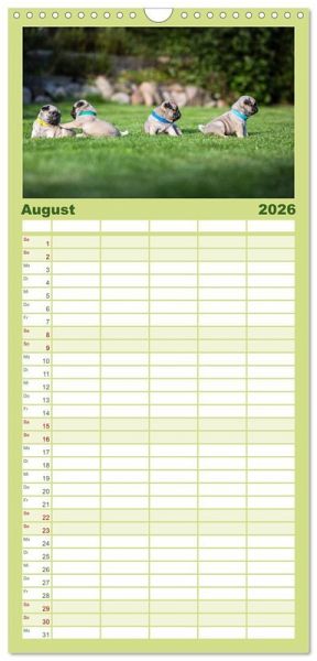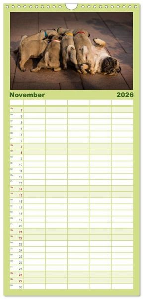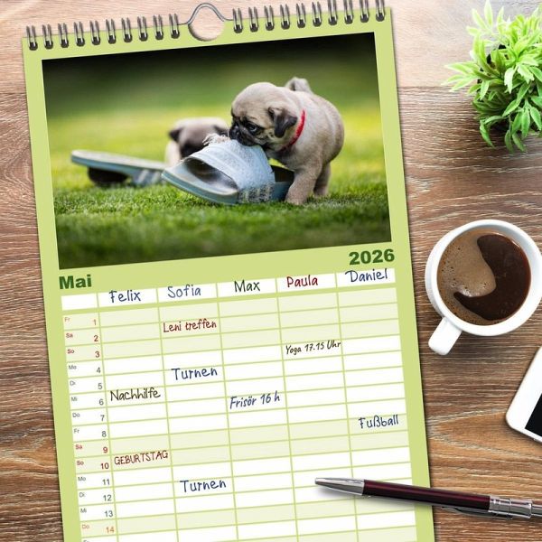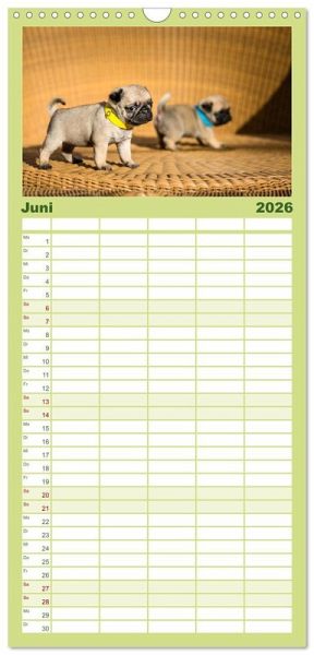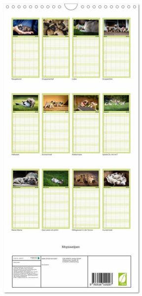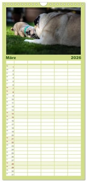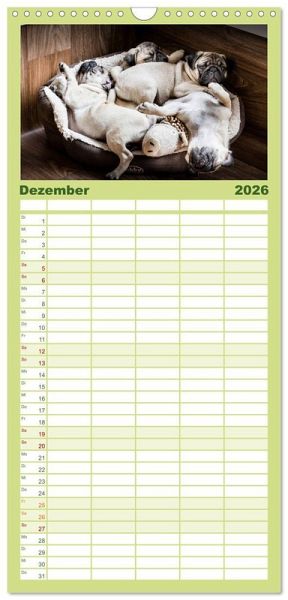 truktur im Alltag - so bleiben alle Termine im Blick!ÜBERSICHTLICH - mit farblich getrennten Wochen- und Feiertagen. Die einzelnen Felder bieten genügend Platz für Eintragungen. So macht Organisieren Spaß!FANTASTISCHE BILDER - Dieser Planer ist nicht nur eine nützliche Hilfe im Alltag, sondern schmückt gleichzeitig Ihr Zuhause. Ideal auch als Geschenk.FÜR ALLE STIFTE GEEIGNET - ganz egal, ob Sie lieber mit Kugelschreiber oder Bleistift schreiben.NACHHALTIG - deutliche Abfallreduzierung durch bedarfsgerechte Einzelstückfertigung, umweltfreundliches FSC-zertifiziertes Papier, Produktion in Deutschland, klimabewusste Logistik.Mopswelpen - Die Welt der kleinen Energiebündel von Autor(in): Ole Dodeck