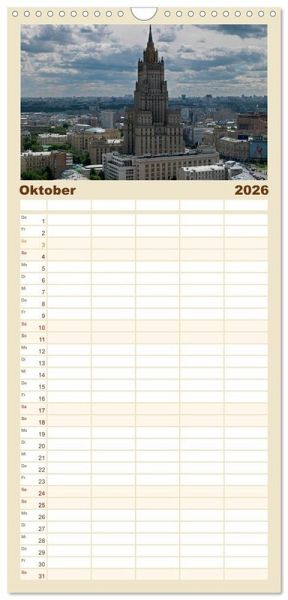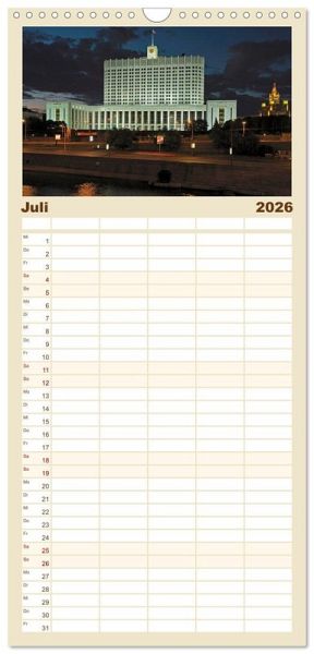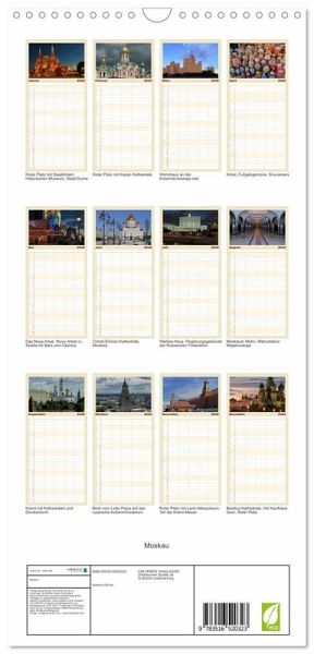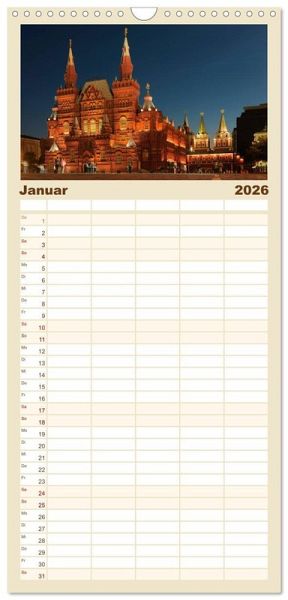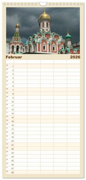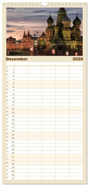 PRAKTISCH - übersichtlicher Familienkalender mit 5 Spalten für bis zu 5 Personen für mehr Struktur im Alltag - so bleiben alle Termine im Blick!ÜBERSICHTLICH - mit farblich getrennten Wochen- und Feiertagen. Die einzelnen Felder bieten genügend Platz für Eintragungen. So macht Organisieren Spaß!FANTASTISCHE BILDER - Dieser Planer ist nicht nur eine nützliche Hilfe im Alltag, sondern schmückt gleichzeitig Ihr Zuhause. Ideal auch als Geschenk.FÜR ALLE STIFTE GEEIGNET - ganz egal, ob Sie lieber mit Kugelschreiber oder Bleistift schreiben.NACHHALTIG - deutliche Abfallreduzierung durch bedarfsgerechte Einzelstückfertigung, umweltfreundliches FSC-zertifiziertes Papier, Produktion in Deutschland, klimabewusste Logistik.Moskau, osteuropäische Kultur vom Feinsten von Autor(in): Hubertus Blume
