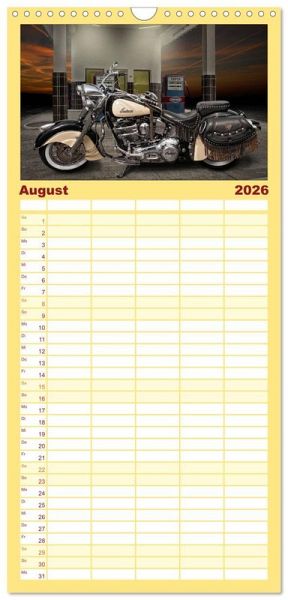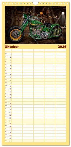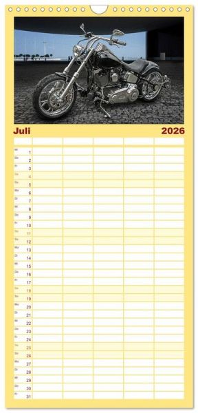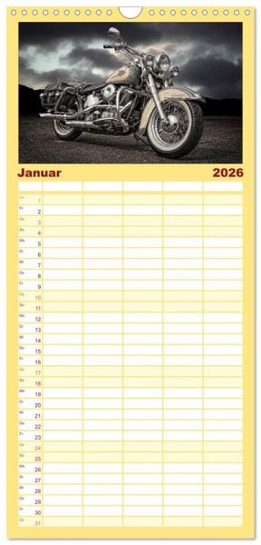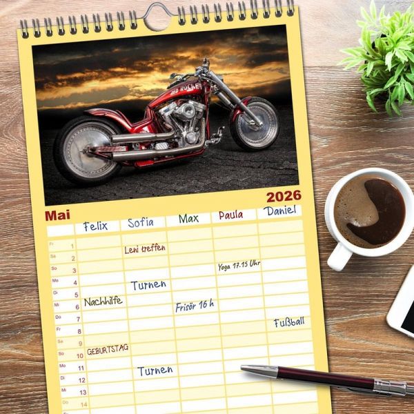 PRAKTISCH - übersichtlicher Familienkalender mit 5 Spalten für bis zu 5 Personen für mehr Struktur im Alltag - so bleiben alle Termine im Blick!ÜBERSICHTLICH - mit farblich getrennten Wochen- und Feiertagen. Die einzelnen Felder bieten genügend Platz für Eintragungen. So macht Organisieren Spaß!FANTASTISCHE BILDER - Dieser Planer ist nicht nur eine nützliche Hilfe im Alltag, sondern schmückt gleichzeitig Ihr Zuhause. Ideal auch als Geschenk.FÜR ALLE STIFTE GEEIGNET - ganz egal, ob Sie lieber mit Kugelschreiber oder Bleistift schreiben.NACHHALTIG - deutliche Abfallreduzierung durch bedarfsgerechte Einzelstückfertigung, umweltfreundliches FSC-zertifiziertes Papier, Produktion in Deutschland, klimabewusste Logistik.Harley-Davidson und außergewöhnliche Custombikes von Autor(in): Michael Pohl