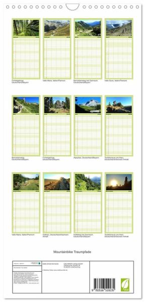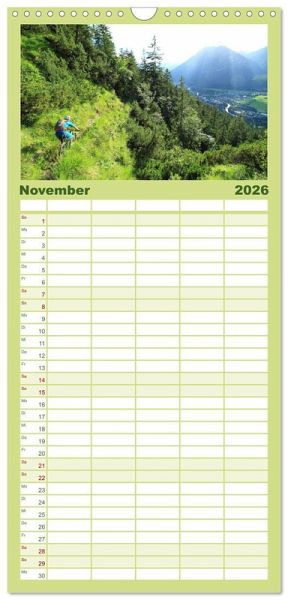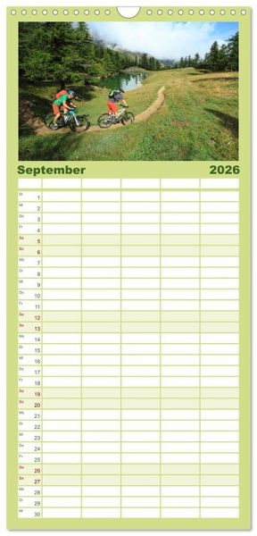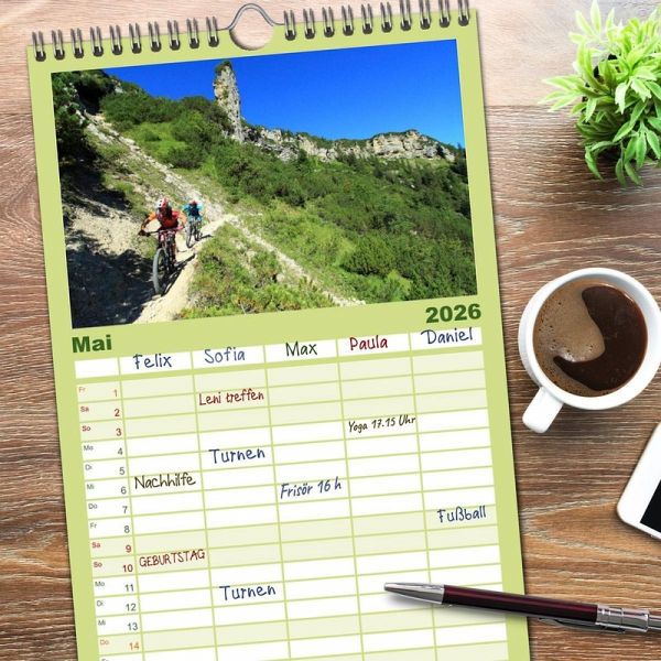 PRAKTISCH - übersichtlicher Familienkalender mit 5 Spalten für bis zu 5 Personen für mehr Struktur im Alltag - so bleiben alle Termine im Blick!ÜBERSICHTLICH - mit farblich getrennten Wochen- und Feiertagen. Die einzelnen Felder bieten genügend Platz für Eintragungen. So macht Organisieren Spaß!FANTASTISCHE BILDER - Dieser Planer ist nicht nur eine nützliche Hilfe im Alltag, sondern schmückt gleichzeitig Ihr Zuhause. Ideal auch als Geschenk.FÜR ALLE STIFTE GEEIGNET - ganz egal, ob Sie lieber mit Kugelschreiber oder Bleistift schreiben.NACHHALTIG - deutliche Abfallreduzierung durch bedarfsgerechte Einzelstückfertigung, umweltfreundliches FSC-zertifiziertes Papier, Produktion in Deutschland, klimabewusste Logistik.12 spannende Mountainbike Motive von Autor(in): Matthias Rotter