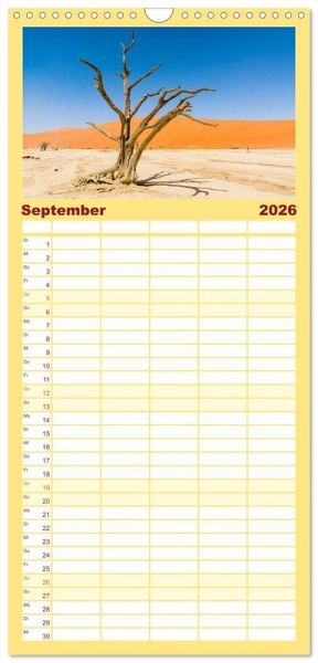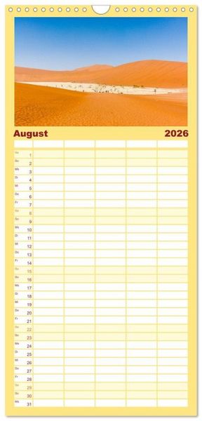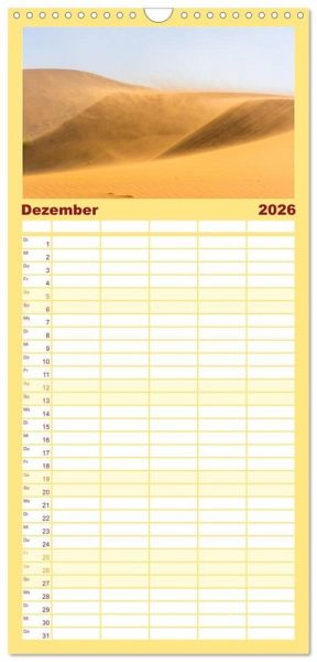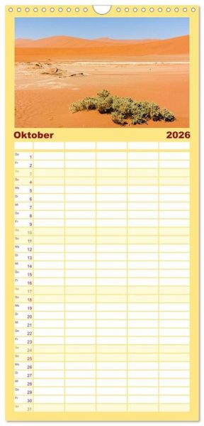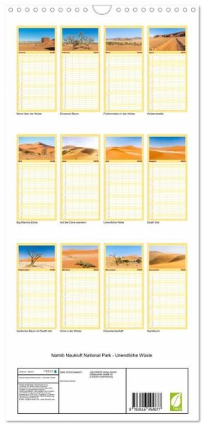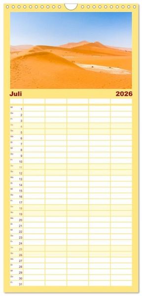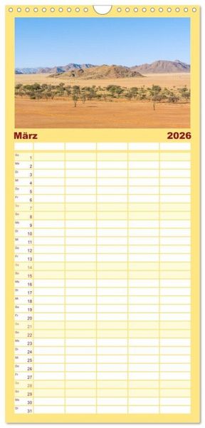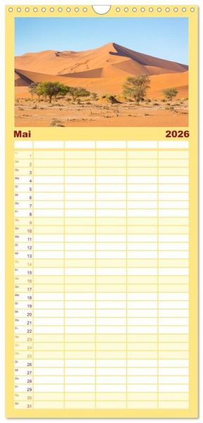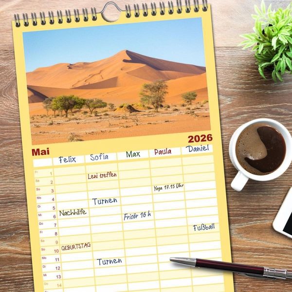 PRAKTISCH - übersichtlicher Familienkalender mit 5 Spalten für bis zu 5 Personen für mehr Struktur im Alltag - so bleiben alle Termine im Blick!ÜBERSICHTLICH - mit farblich getrennten Wochen- und Feiertagen. Die einzelnen Felder bieten genügend Platz für Eintragungen. So macht Organisieren Spaß!FANTASTISCHE BILDER - Dieser Planer ist nicht nur eine nützliche Hilfe im Alltag, sondern schmückt gleichzeitig Ihr Zuhause. Ideal auch als Geschenk.FÜR ALLE STIFTE GEEIGNET - ganz egal, ob Sie lieber mit Kugelschreiber oder Bleistift schreiben.NACHHALTIG - deutliche Abfallreduzierung durch bedarfsgerechte Einzelstückfertigung, umweltfreundliches FSC-zertifiziertes Papier, Produktion in Deutschland, klimabewusste Logistik.Faszinierende Wüstenwelt Namibias von Autor(in): Christiane Kulisch