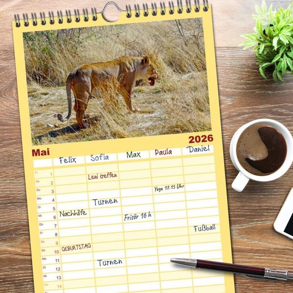 PRAKTISCH - übersichtlicher Familienkalender mit 5 Spalten für bis zu 5 Personen für mehr Struktur im Alltag - so bleiben alle Termine im Blick!ÜBERSICHTLICH - mit farblich getrennten Wochen- und Feiertagen. Die einzelnen Felder bieten genügend Platz für Eintragungen. So macht Organisieren Spaß!FANTASTISCHE BILDER - Dieser Planer ist nicht nur eine nützliche Hilfe im Alltag, sondern schmückt gleichzeitig Ihr Zuhause. Ideal auch als Geschenk.FÜR ALLE STIFTE GEEIGNET - ganz egal, ob Sie lieber mit Kugelschreiber oder Bleistift schreiben.NACHHALTIG - deutliche Abfallreduzierung durch bedarfsgerechte Einzelstückfertigung, umweltfreundliches FSC-zertifiziertes Papier, Produktion in Deutschland, klimabewusste Logistik.Sehen Sie faszinierende Bilder von Wüste und Tierwelt. von Autor(in): Peter Lachenmayr