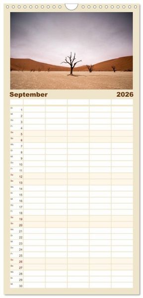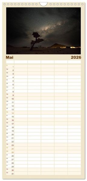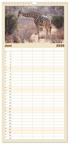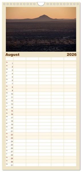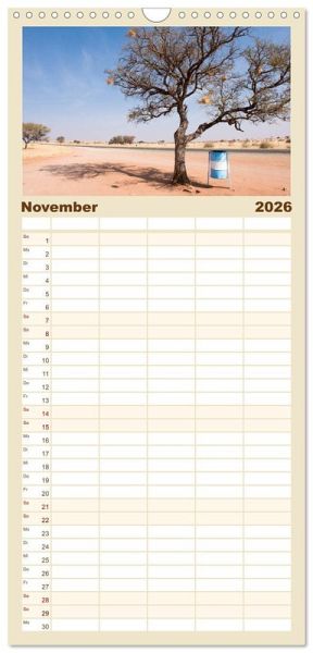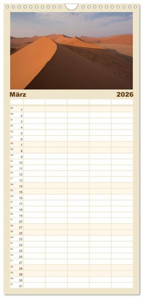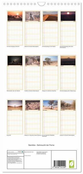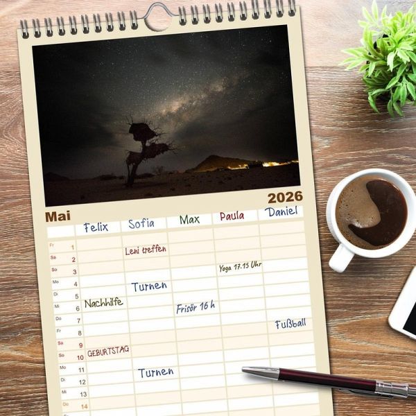 PRAKTISCH - übersichtlicher Familienkalender mit 5 Spalten für bis zu 5 Personen für mehr Struktur im Alltag - so bleiben alle Termine im Blick!ÜBERSICHTLICH - mit farblich getrennten Wochen- und Feiertagen. Die einzelnen Felder bieten genügend Platz für Eintragungen. So macht Organisieren Spaß!FANTASTISCHE BILDER - Dieser Planer ist nicht nur eine nützliche Hilfe im Alltag, sondern schmückt gleichzeitig Ihr Zuhause. Ideal auch als Geschenk.FÜR ALLE STIFTE GEEIGNET - ganz egal, ob Sie lieber mit Kugelschreiber oder Bleistift schreiben.NACHHALTIG - deutliche Abfallreduzierung durch bedarfsgerechte Einzelstückfertigung, umweltfreundliches FSC-zertifiziertes Papier, Produktion in Deutschland, klimabewusste Logistik.12 Monate Tier- und Lanschaftsaufnahmen aus Namibia von Autor(in): Christian Bremser