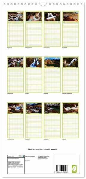 nen für mehr Struktur im Alltag - so bleiben alle Termine im Blick!ÜBERSICHTLICH - mit farblich getrennten Wochen- und Feiertagen. Die einzelnen Felder bieten genügend Platz für Eintragungen. So macht Organisieren Spaß!FANTASTISCHE BILDER - Dieser Planer ist nicht nur eine nützliche Hilfe im Alltag, sondern schmückt gleichzeitig Ihr Zuhause. Ideal auch als Geschenk.FÜR ALLE STIFTE GEEIGNET - ganz egal, ob Sie lieber mit Kugelschreiber oder Bleistift schreiben.NACHHALTIG - deutliche Abfallreduzierung durch bedarfsgerechte Einzelstückfertigung, umweltfreundliches FSC-zertifiziertes Papier, Produktion in Deutschland, klimabewusste Logistik.Die Wasser des Zillertals in ihrer faszinierenden Schönheit von Autor(in): Josef Aichner