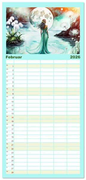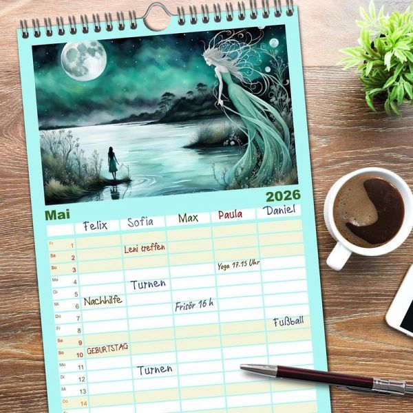 PRAKTISCH - übersichtlicher Familienkalender mit 5 Spalten für bis zu 5 Personen für mehr Struktur im Alltag - so bleiben alle Termine im Blick!ÜBERSICHTLICH - mit farblich getrennten Wochen- und Feiertagen. Die einzelnen Felder bieten genügend Platz für Eintragungen. So macht Organisieren Spaß!FANTASTISCHE BILDER - Dieser Planer ist nicht nur eine nützliche Hilfe im Alltag, sondern schmückt gleichzeitig Ihr Zuhause. Ideal auch als Geschenk.FÜR ALLE STIFTE GEEIGNET - ganz egal, ob Sie lieber mit Kugelschreiber oder Bleistift schreiben.NACHHALTIG - deutliche Abfallreduzierung durch bedarfsgerechte Einzelstückfertigung, umweltfreundliches FSC-zertifiziertes Papier, Produktion in Deutschland, klimabewusste Logistik.Ein ganzes Jahr Magie und Natur. von Autor(in): Dusanka Djeric