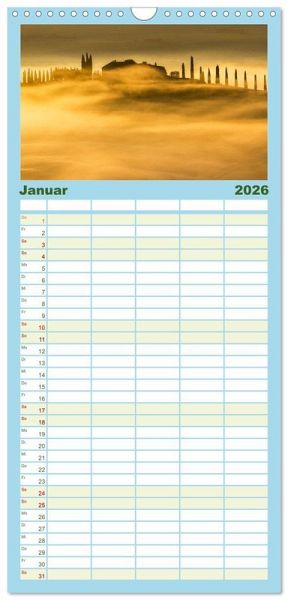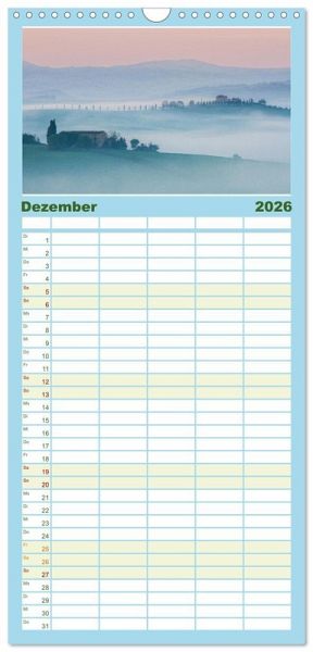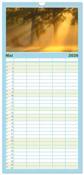 PRAKTISCH - übersichtlicher Familienkalender mit 5 Spalten für bis zu 5 Personen für mehr Struktur im Alltag - so bleiben alle Termine im Blick!ÜBERSICHTLICH - mit farblich getrennten Wochen- und Feiertagen. Die einzelnen Felder bieten genügend Platz für Eintragungen. So macht Organisieren Spaß!FANTASTISCHE BILDER - Dieser Planer ist nicht nur eine nützliche Hilfe im Alltag, sondern schmückt gleichzeitig Ihr Zuhause. Ideal auch als Geschenk.FÜR ALLE STIFTE GEEIGNET - ganz egal, ob Sie lieber mit Kugelschreiber oder Bleistift schreiben.NACHHALTIG - deutliche Abfallreduzierung durch bedarfsgerechte Einzelstückfertigung, umweltfreundliches FSC-zertifiziertes Papier, Produktion in Deutschland, klimabewusste Logistik.Zauberhafte Nebelbilder von unterschiedlichen europäischen Orten von Autor(in): Peter Schürholz