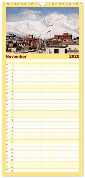 PRAKTISCH - übersichtlicher Familienkalender mit 5 Spalten für bis zu 5 Personen für mehr Struktur im Alltag - so bleiben alle Termine im Blick!ÜBERSICHTLICH - mit farblich getrennten Wochen- und Feiertagen. Die einzelnen Felder bieten genügend Platz für Eintragungen. So macht Organisieren Spaß!FANTASTISCHE BILDER - Dieser Planer ist nicht nur eine nützliche Hilfe im Alltag, sondern schmückt gleichzeitig Ihr Zuhause. Ideal auch als Geschenk.FÜR ALLE STIFTE GEEIGNET - ganz egal, ob Sie lieber mit Kugelschreiber oder Bleistift schreiben.NACHHALTIG - deutliche Abfallreduzierung durch bedarfsgerechte Einzelstückfertigung, umweltfreundliches FSC-zertifiziertes Papier, Produktion in Deutschland, klimabewusste Logistik.13 traumhafte Reisefotos aus dem buddhistischen ehemaligen Königreich im Himalaya. von Autor(in): Peter Schickert