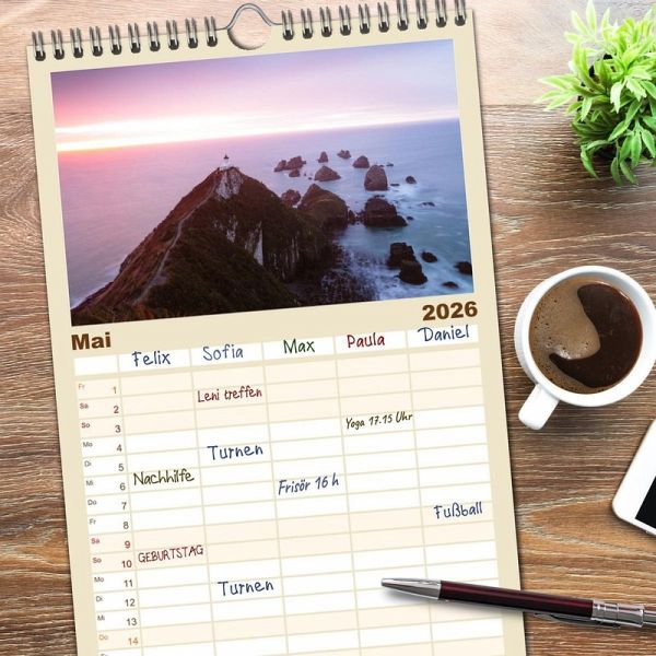 PRAKTISCH - übersichtlicher Familienkalender mit 5 Spalten für bis zu 5 Personen für mehr Struktur im Alltag - so bleiben alle Termine im Blick!ÜBERSICHTLICH - mit farblich getrennten Wochen- und Feiertagen. Die einzelnen Felder bieten genügend Platz für Eintragungen. So macht Organisieren Spaß!FANTASTISCHE BILDER - Dieser Planer ist nicht nur eine nützliche Hilfe im Alltag, sondern schmückt gleichzeitig Ihr Zuhause. Ideal auch als Geschenk.FÜR ALLE STIFTE GEEIGNET - ganz egal, ob Sie lieber mit Kugelschreiber oder Bleistift schreiben.NACHHALTIG - deutliche Abfallreduzierung durch bedarfsgerechte Einzelstückfertigung, umweltfreundliches FSC-zertifiziertes Papier, Produktion in Deutschland, klimabewusste Logistik.Hervorragende Naturszenen aus der Wildnis von Autor(in): Matteo Colombo