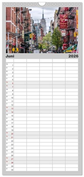 licher Familienkalender mit 5 Spalten für bis zu 5 Personen für mehr Struktur im Alltag - so bleiben alle Termine im Blick!ÜBERSICHTLICH - mit farblich getrennten Wochen- und Feiertagen. Die einzelnen Felder bieten genügend Platz für Eintragungen. So macht Organisieren Spaß!FANTASTISCHE BILDER - Dieser Planer ist nicht nur eine nützliche Hilfe im Alltag, sondern schmückt gleichzeitig Ihr Zuhause. Ideal auch als Geschenk.FÜR ALLE STIFTE GEEIGNET - ganz egal, ob Sie lieber mit Kugelschreiber oder Bleistift schreiben.NACHHALTIG - deutliche Abfallreduzierung durch bedarfsgerechte Einzelstückfertigung, umweltfreundliches FSC-zertifiziertes Papier, Produktion in Deutschland, klimabewusste Logistik.Einzigartige Fotos der Wahrzeichen von New York City von Autor(in): Matteo Colombo