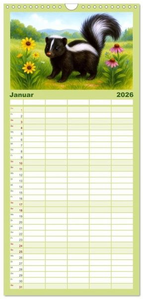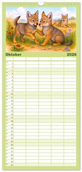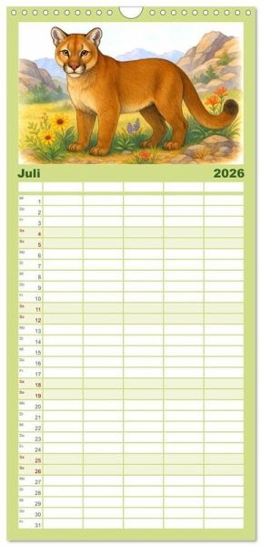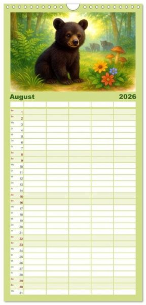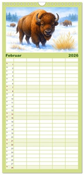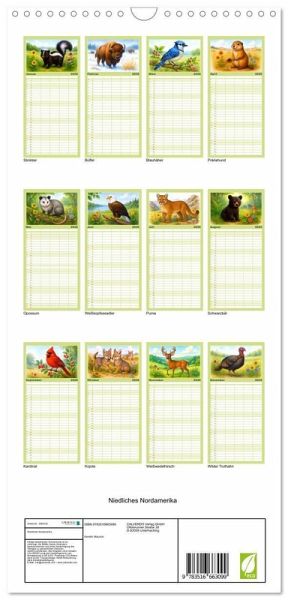 en für bis zu 5 Personen für mehr Struktur im Alltag - so bleiben alle Termine im Blick!ÜBERSICHTLICH - mit farblich getrennten Wochen- und Feiertagen. Die einzelnen Felder bieten genügend Platz für Eintragungen. So macht Organisieren Spaß!FANTASTISCHE BILDER - Dieser Planer ist nicht nur eine nützliche Hilfe im Alltag, sondern schmückt gleichzeitig Ihr Zuhause. Ideal auch als Geschenk.FÜR ALLE STIFTE GEEIGNET - ganz egal, ob Sie lieber mit Kugelschreiber oder Bleistift schreiben.NACHHALTIG - deutliche Abfallreduzierung durch bedarfsgerechte Einzelstückfertigung, umweltfreundliches FSC-zertifiziertes Papier, Produktion in Deutschland, klimabewusste Logistik.Entdecke die freundliche Seite wilder nordamerikanischer Tiere in detailreichen, liebevoll gestalteten Illustrationen, die Groß und Klein begeistern von Autor(in): Kerstin Waurick