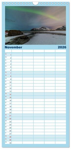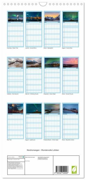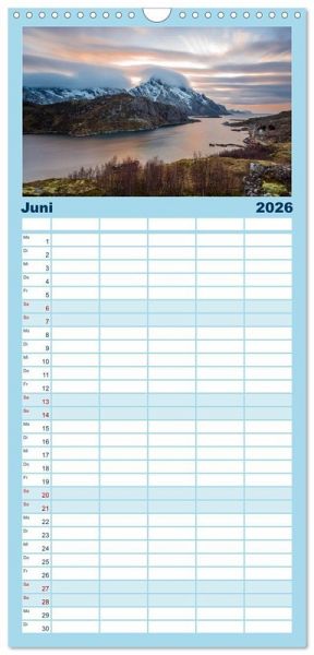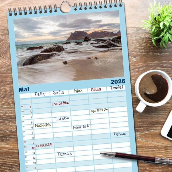 PRAKTISCH - übersichtlicher Familienkalender mit 5 Spalten für bis zu 5 Personen für mehr Struktur im Alltag - so bleiben alle Termine im Blick!ÜBERSICHTLICH - mit farblich getrennten Wochen- und Feiertagen. Die einzelnen Felder bieten genügend Platz für Eintragungen. So macht Organisieren Spaß!FANTASTISCHE BILDER - Dieser Planer ist nicht nur eine nützliche Hilfe im Alltag, sondern schmückt gleichzeitig Ihr Zuhause. Ideal auch als Geschenk.FÜR ALLE STIFTE GEEIGNET - ganz egal, ob Sie lieber mit Kugelschreiber oder Bleistift schreiben.NACHHALTIG - deutliche Abfallreduzierung durch bedarfsgerechte Einzelstückfertigung, umweltfreundliches FSC-zertifiziertes Papier, Produktion in Deutschland, klimabewusste Logistik.Faszinierende Landschaften in stimmungsvollem Licht von Autor(in): Nick Wrobel