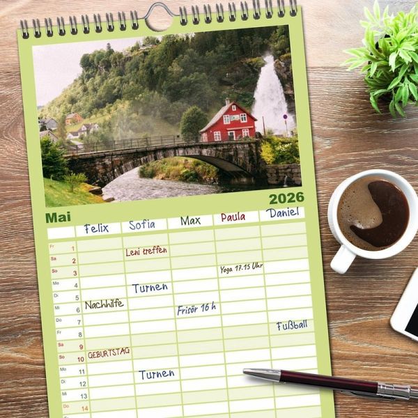 für bis zu 5 Personen für mehr Struktur im Alltag - so bleiben alle Termine im Blick!ÜBERSICHTLICH - mit farblich getrennten Wochen- und Feiertagen. Die einzelnen Felder bieten genügend Platz für Eintragungen. So macht Organisieren Spaß!FANTASTISCHE BILDER - Dieser Planer ist nicht nur eine nützliche Hilfe im Alltag, sondern schmückt gleichzeitig Ihr Zuhause. Ideal auch als Geschenk.FÜR ALLE STIFTE GEEIGNET - ganz egal, ob Sie lieber mit Kugelschreiber oder Bleistift schreiben.NACHHALTIG - deutliche Abfallreduzierung durch bedarfsgerechte Einzelstückfertigung, umweltfreundliches FSC-zertifiziertes Papier, Produktion in Deutschland, klimabewusste Logistik.Begleiten Sie uns auf eine wundervolle Reise nach Norwegen. von Autor(in): Benjamin Lederer