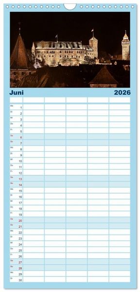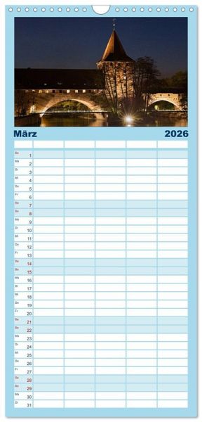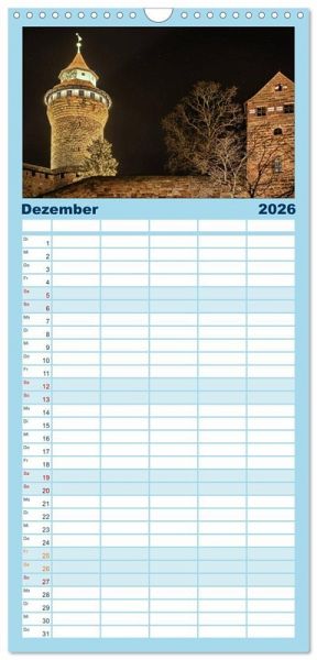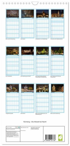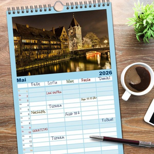 PRAKTISCH - übersichtlicher Familienkalender mit 5 Spalten für bis zu 5 Personen für mehr Struktur im Alltag - so bleiben alle Termine im Blick!ÜBERSICHTLICH - mit farblich getrennten Wochen- und Feiertagen. Die einzelnen Felder bieten genügend Platz für Eintragungen. So macht Organisieren Spaß!FANTASTISCHE BILDER - Dieser Planer ist nicht nur eine nützliche Hilfe im Alltag, sondern schmückt gleichzeitig Ihr Zuhause. Ideal auch als Geschenk.FÜR ALLE STIFTE GEEIGNET - ganz egal, ob Sie lieber mit Kugelschreiber oder Bleistift schreiben.NACHHALTIG - deutliche Abfallreduzierung durch bedarfsgerechte Einzelstückfertigung, umweltfreundliches FSC-zertifiziertes Papier, Produktion in Deutschland, klimabewusste Logistik.Wahrzeichen der Stadt Nürnberg bei Nacht von Autor(in): Andreas Bininda
