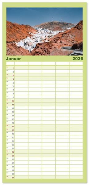 PRAKTISCH - übersichtlicher Familienkalender mit 5 Spalten für bis zu 5 Personen für mehr Struktur im Alltag - so bleiben alle Termine im Blick!ÜBERSICHTLICH - mit farblich getrennten Wochen- und Feiertagen. Die einzelnen Felder bieten genügend Platz für Eintragungen. So macht Organisieren Spaß!FANTASTISCHE BILDER - Dieser Planer ist nicht nur eine nützliche Hilfe im Alltag, sondern schmückt gleichzeitig Ihr Zuhause. Ideal auch als Geschenk.FÜR ALLE STIFTE GEEIGNET - ganz egal, ob Sie lieber mit Kugelschreiber oder Bleistift schreiben.NACHHALTIG - deutliche Abfallreduzierung durch bedarfsgerechteEinzelstückfertigung, umweltfreundliches FSC-zertifiziertes Papier, Produktion in Deutschland, klimabewusste Logistik.Eine Reise durch eines der schönsten Länder auf der arabischen Halbinsel von Autor(in): Sonja Schlichter