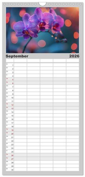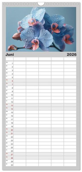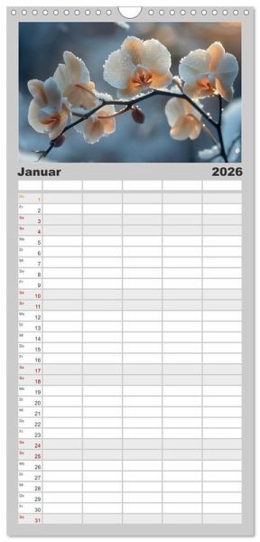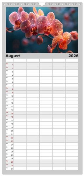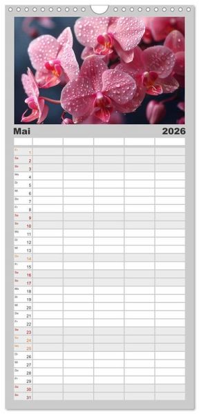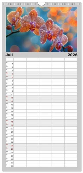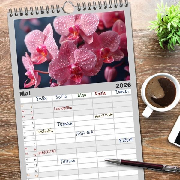 PRAKTISCH - übersichtlicher Familienkalender mit 5 Spalten für bis zu 5 Personen für mehr Struktur im Alltag - so bleiben alle Termine im Blick!ÜBERSICHTLICH - mit farblich getrennten Wochen- und Feiertagen. Die einzelnen Felder bieten genügend Platz für Eintragungen. So macht Organisieren Spaß!FANTASTISCHE BILDER - Dieser Planer ist nicht nur eine nützliche Hilfe im Alltag, sondern schmückt gleichzeitig Ihr Zuhause. Ideal auch als Geschenk.FÜR ALLE STIFTE GEEIGNET - ganz egal, ob Sie lieber mit Kugelschreiber oder Bleistift schreiben.NACHHALTIG - deutliche Abfallreduzierung durch bedarfsgerechte Einzelstückfertigung, umweltfreundliches FSC-zertifiziertes Papier, Produktion in Deutschland, klimabewusste Logistik.Motivkalender Orchideen von Autor(in): Tina Grohs