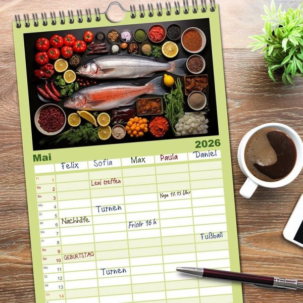 PRAKTISCH - übersichtlicher Familienkalender mit 5 Spalten für bis zu 5 Personen für mehr Struktur im Alltag - so bleiben alle Termine im Blick!ÜBERSICHTLICH - mit farblich getrennten Wochen- und Feiertagen. Die einzelnen Felder bieten genügend Platz für Eintragungen. So macht Organisieren Spaß!FANTASTISCHE BILDER - Dieser Planer ist nicht nur eine nützliche Hilfe im Alltag, sondern schmückt gleichzeitig Ihr Zuhause. Ideal auch als Geschenk.FÜR ALLE STIFTE GEEIGNET - ganz egal, ob Sie lieber mit Kugelschreiber oder Bleistift schreiben.NACHHALTIG - deutliche Abfallreduzierung durch bedarfsgerechte Einzelstückfertigung, umweltfreundliches FSC-zertifiziertes Papier, Produktion in Deutschland, klimabewusste Logistik.Wenn das Auge die schöne Ordnung genießt von Autor(in): Kerstin Waurick