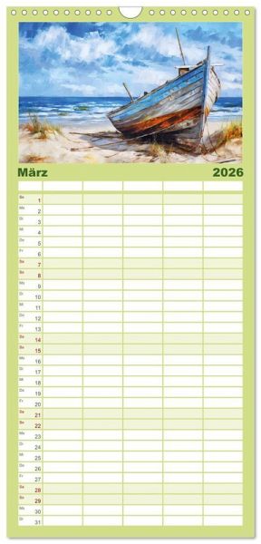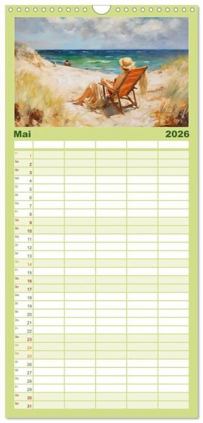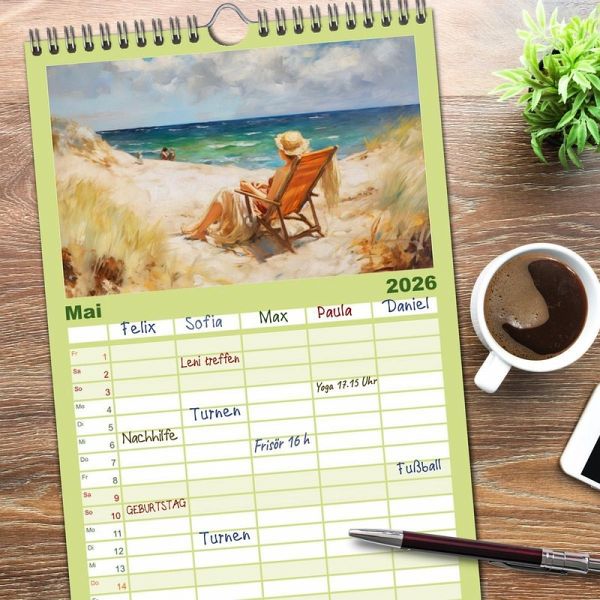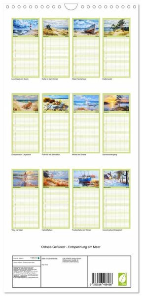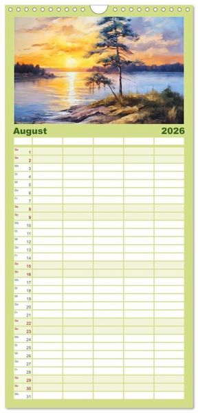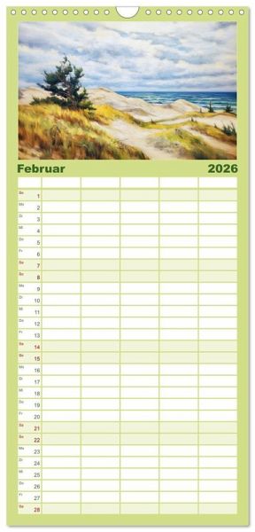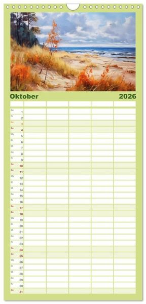 PRAKTISCH - übersichtlicher Familienkalender mit 5 Spalten für bis zu 5 Personen für mehr Struktur im Alltag - so bleiben alle Termine im Blick!ÜBERSICHTLICH - mit farblich getrennten Wochen- und Feiertagen. Die einzelnen Felder bieten genügend Platz für Eintragungen. So macht Organisieren Spaß!FANTASTISCHE BILDER - Dieser Planer ist nicht nur eine nützliche Hilfe im Alltag, sondern schmückt gleichzeitig Ihr Zuhause. Ideal auch als Geschenk.FÜR ALLE STIFTE GEEIGNET - ganz egal, ob Sie lieber mit Kugelschreiber oder Bleistift schreiben.NACHHALTIG - deutliche Abfallreduzierung durch bedarfsgerechte Einzelstückfertigung, umweltfreundliches FSC-zertifiziertes Papier, Produktion in Deutschland, klimabewusste Logistik.Die beruhigende Schönheit der Ostsee im Ölmalstil von Autor(in): Anja Frost