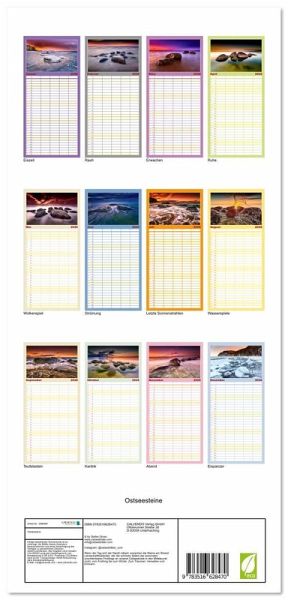 eiertagen. Die einzelnen Felder bieten genügend Platz für Eintragungen. So macht Organisieren Spaß!FANTASTISCHE BILDER - Dieser Planer ist nicht nur eine nützliche Hilfe im Alltag, sondern schmückt gleichzeitig Ihr Zuhause. Ideal auch als Geschenk.FÜR ALLE STIFTE GEEIGNET - ganz egal, ob Sie lieber mit Kugelschreiber oder Bleistift schreiben.NACHHALTIG - deutliche Abfallreduzierung durch bedarfsgerechte Einzelstückfertigung, umweltfreundliches FSC-zertifiziertes Papier, Produktion in Deutschland, klimabewusste Logistik.Findlinge im Wasser und Sonnenuntergänge an der Ostsee von Autor(in): Stefan Dinse
